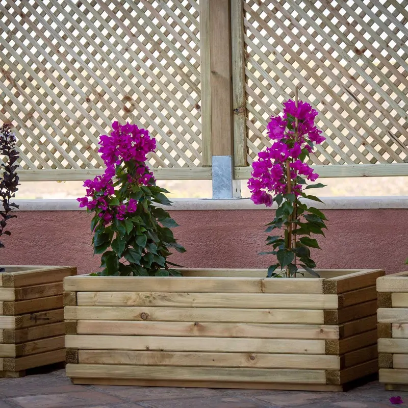 Οι γλάστρες μας είναι επεξεργασμένες υπό πίεση με ένα συντηρητικό νέας γενιάς TANALITH για να έχουν τουλάχιστον 10 χρόνια προστασίας από τη φθορά του ξύλου και την προσβολή από έντομα.